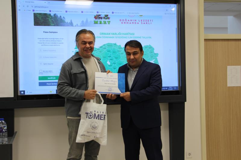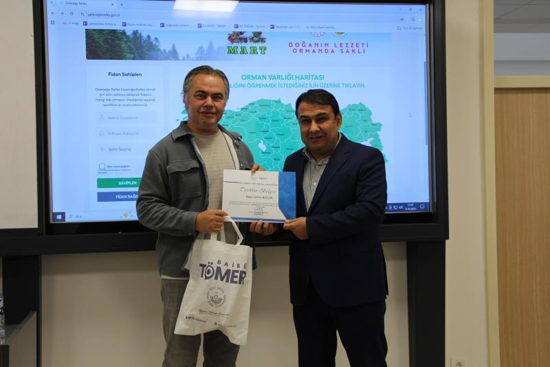 Program sonunda, TÖMER Müdürü Prof. Dr. Mustafa Kundakçı, katkılarından dolayı Bolu Orman Bölge Müdürlüğü Şube Mühendisi Bayram Cankut ve Basın ve İletişim Şube Müdürü Emre Koçak beyefendilere teşekkür belgelerini takdim etti.