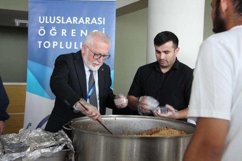 Pilav ikramını Bolu Abant İzzet Baysal Üniversitesi Rektörü Prof. Dr. Mustafa Alişarlı başlattı.